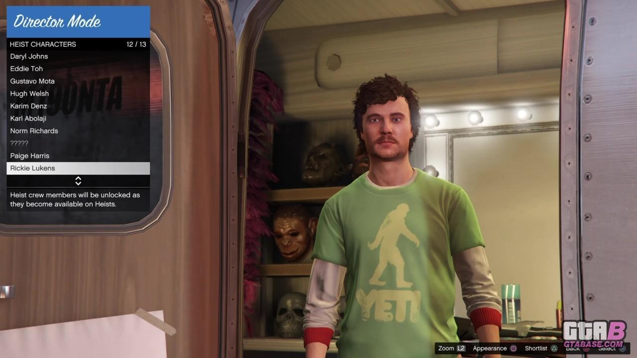Рикки Люкенс также доступен для найма в качестве хакера для ограбления казино Diamond, но является худшим доступным хакером в Grand Theft Auto: Online, беря всего 3%.