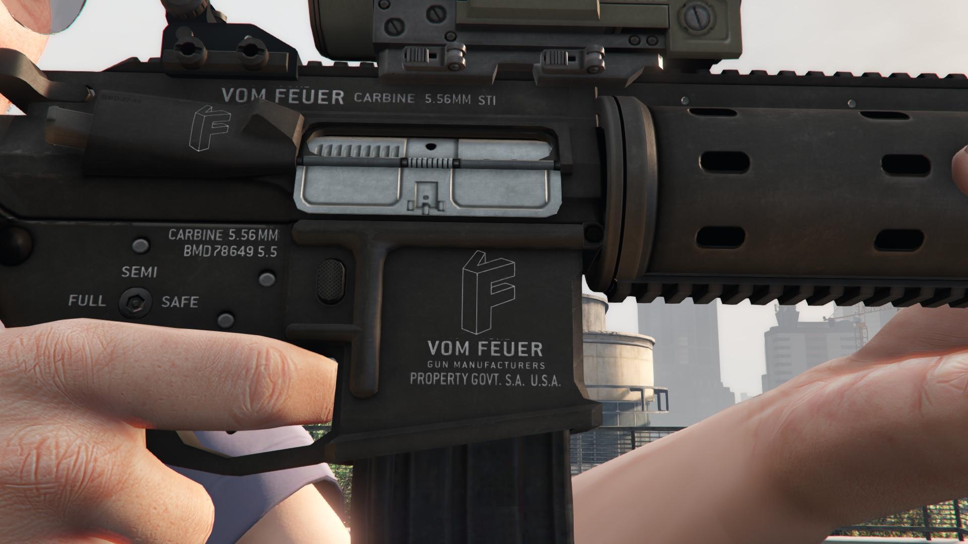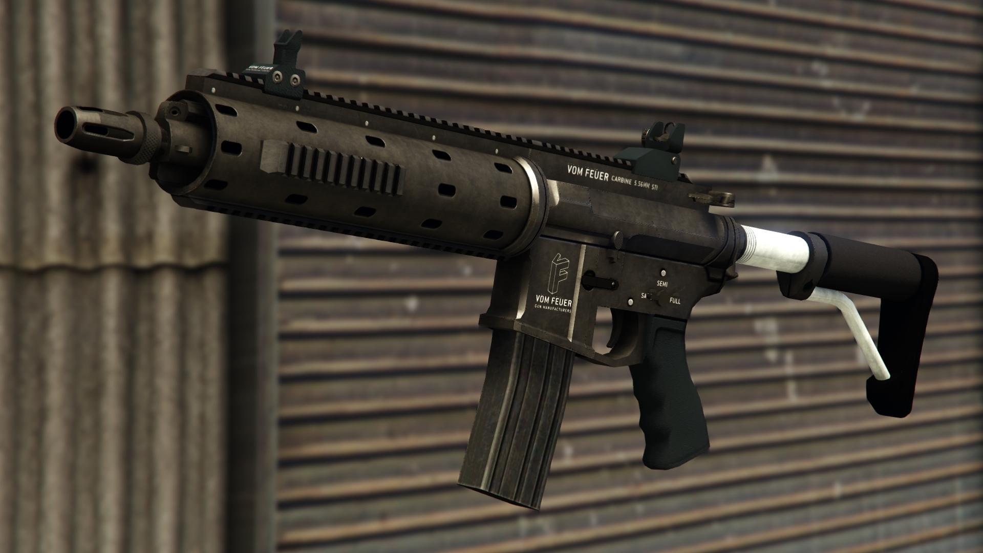 Дизайн винтовки Carbine основан на реальных моделях AR-15, Remington R5 RGP, HK416. В игре оружие производится компанией Vom Feuer.