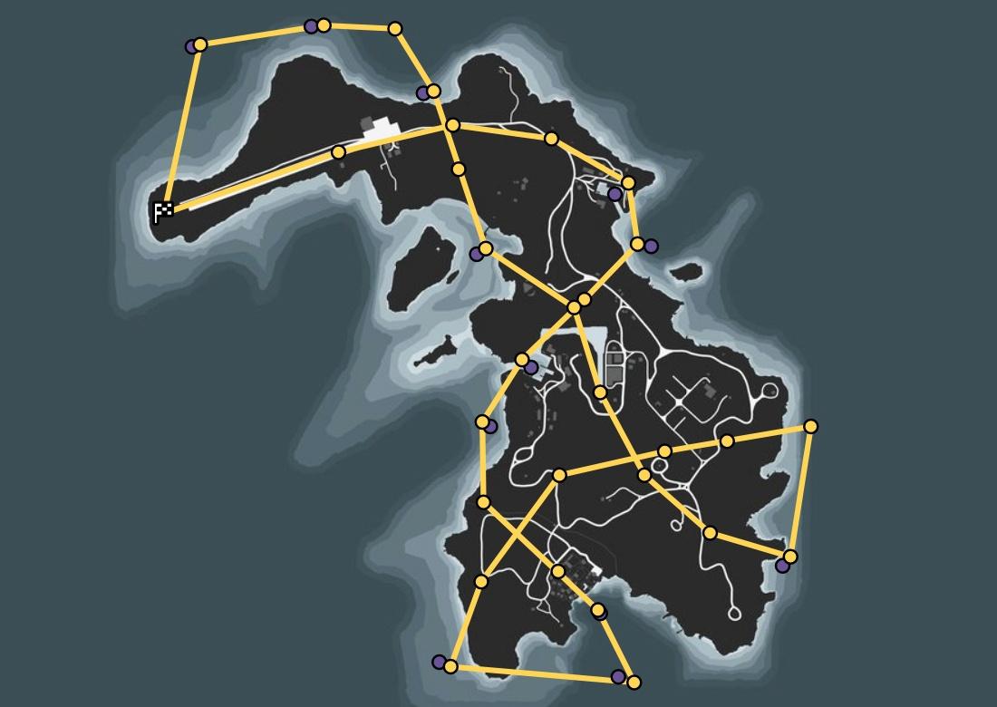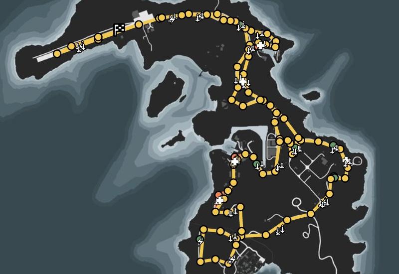 Закон Сан-Андреаса требует полного аудита безопасности перед полётом: проверка лицензий пилотов, отработка аварийных процедур, опущенные подлокотники, уровень алкоголя в крови в пределах нормы. К счастью для тебя, ты больше не в Сан-Андреасе. Наслаждайся! Круговая гонка на самолётах.