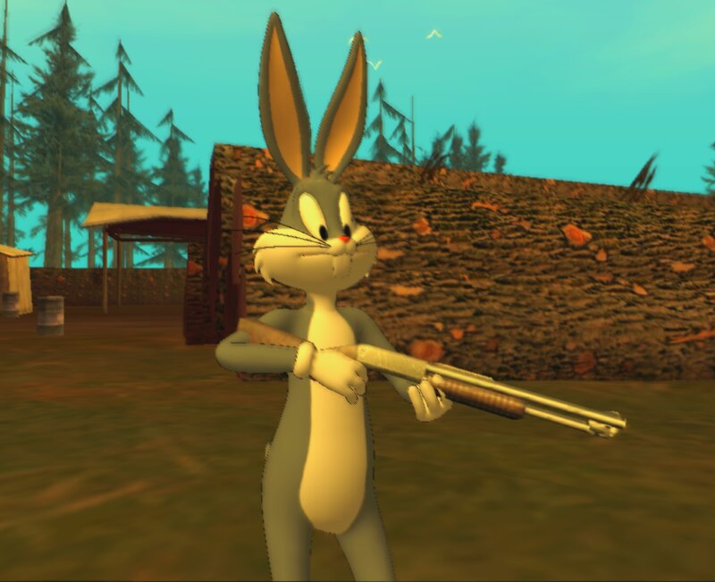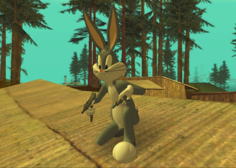 Скачайте скин Bugs Bunny из Looney Tunes для GTA San Andreas и добавьте в игру любимого персонажа из Fortnite. Уникальный мод для фанатов мультфильмов и геймплея GTA.