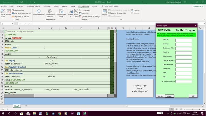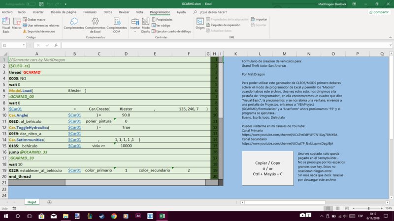 Если используется генератор быстрой настройки транспортных средств для GTA:SA, то это архив с завершением (.xlsm), который означает, что у вас есть программа “EXCEL”, и активируется опция “Программатор” в EXCEL, чтобы можно было исправить архив без проблем.