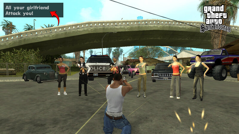 Мод Girlfriend Attack для GTA San Andreas позволяет сражаться с шестью подругами, если вы завершили игру и имеете всех девушек. Устанавливается через папку Cleo, активируется чит-кодом GFKIL. После активации подруги атакуют игрока, а убийство одной из них временно убирает иконку любви на радаре. Мод совместим только с пройденной игрой с шестью подругами.