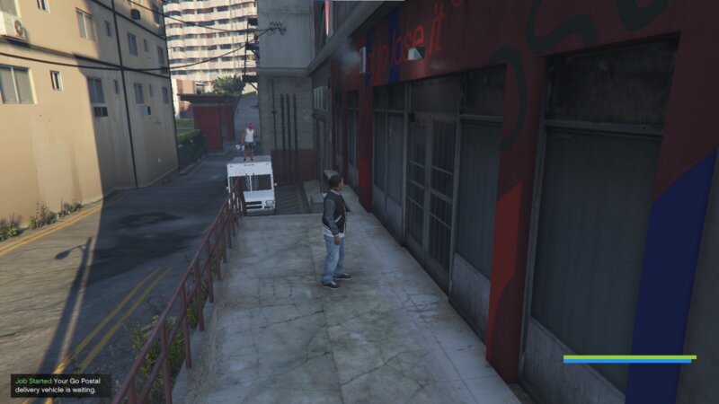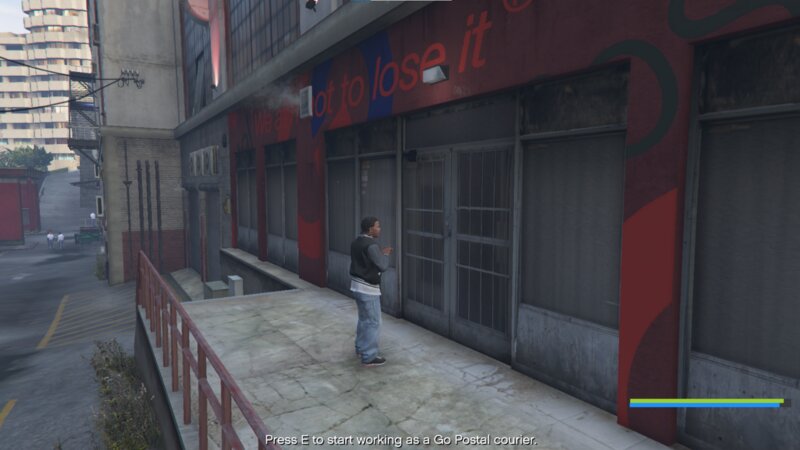 Запустите задание в штаб-квартире Go Postal, нажав «E» (желтый значок со значком посылки).