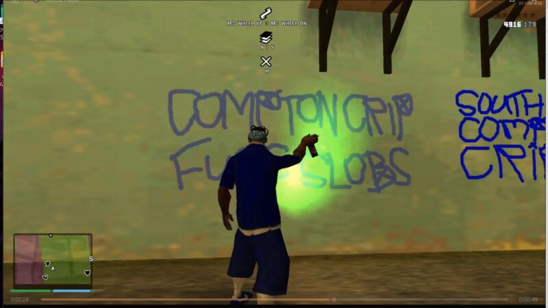 Мод Graffiti Anywhere Crip Version для GTA San Andreas заменяет теги банды Family на теги Compton Crip. Теги сохраняются в игре после сохранения прогресса.