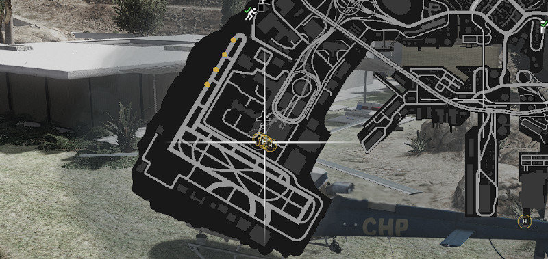 Моя цель в сценарии заключалась в том, чтобы мини-карта выглядела более «живой», но на данный момент механика проста, с механизмом отображения, который работает следующим образом: если игрок находится внутри вертолета, на карте отобразятся все вертолетные площадки, размещенные в игре, вместе с анимацией, напоминающей маяки аэропорта.
