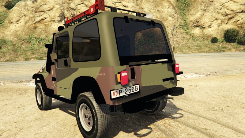 Скачать мод Jeep Wrangler 1986 Serbian Army для GTA 5. Реалистичный внедорожник 1986 года с мощным двигателем AMC inline-six и прочной стальной рамой. Идеален для бездорожья и военных миссий в игре.