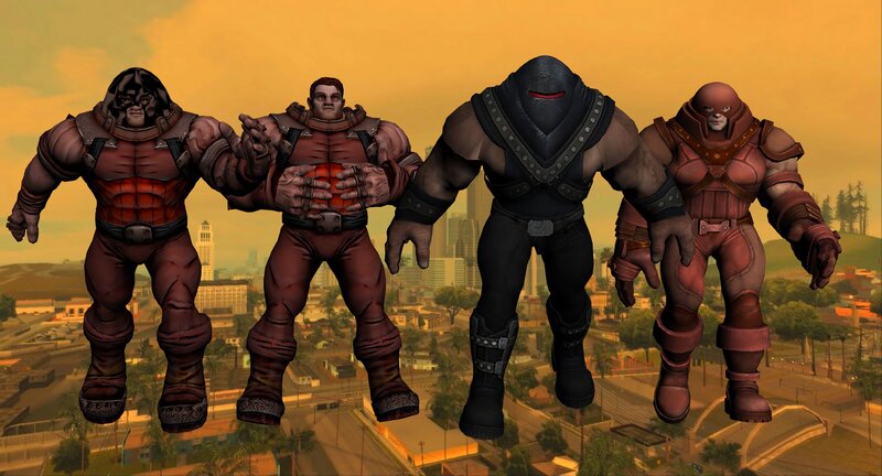 Скачайте скины Juggernaut для GTA San Andreas: Ultimate Juggernaut, Juggernaut из Marvel: Ultimate Alliance 2 и Juggernaut из Spider-Man: Shattered Dimensions. Эти скины больше обычных персонажей и могут иметь небольшие несовершенства из-за сложности костюма. Отличный выбор для разнообразия игры!