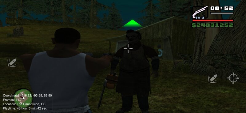 Этот мод добавляет Кожаное лицо из Техасской резни бензопилой в мобильную версию GTA SA. Он появляется в любое время со своей бензопилой, что делает игру еще более страшной.